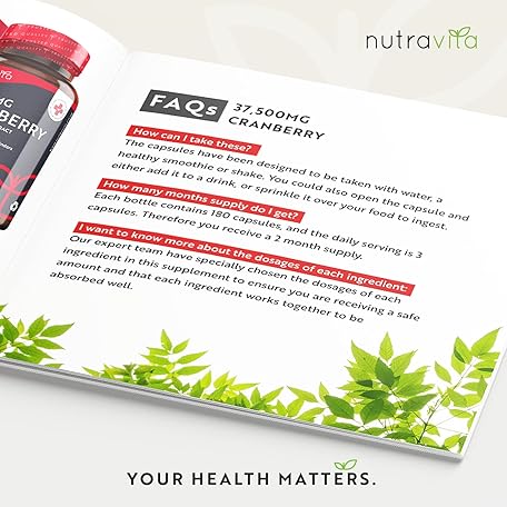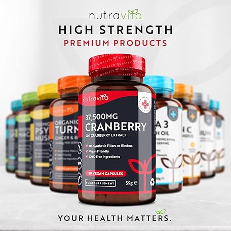 Sản phẩm Max Strength Cranberry 37,500mg - 180 Vegan Capsules – Daily Supplement for Women – 50:1 Pure Cranberry Extract Supplement – Made in The UK by Nutravita đang được bán với giá ưu đãi là $17.1566 tại nước Anh.