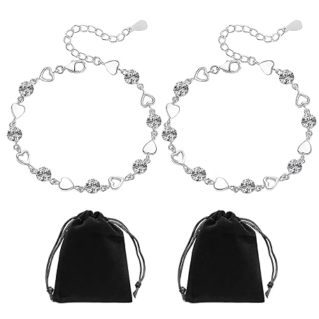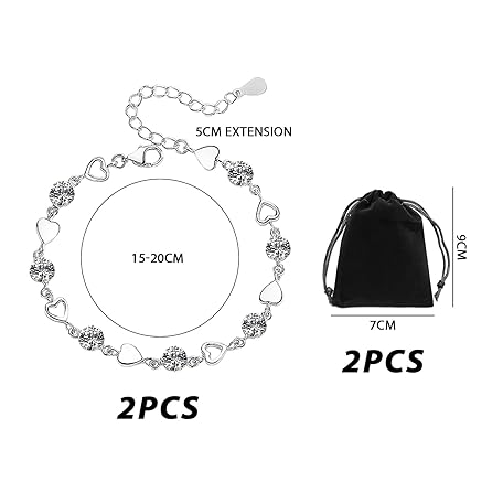 Sản phẩm MAXQUU 2 Pieces Heart Shaped Bracelets With Black Storage Bags - Adjustable Silver Diamond Bracelets for Women, Fashionable Hand Accessories for Ladies and Girls đang được bán với giá ưu đãi là $7.8262 tại nước Anh.
