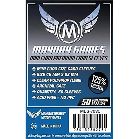 Sản phẩm Mayday Games 45 x 68 mm SLEEVES Mini Euro Premium Card Game (Pack of 50) đang được bán với giá ưu đãi là $6.6163 tại nước Anh.