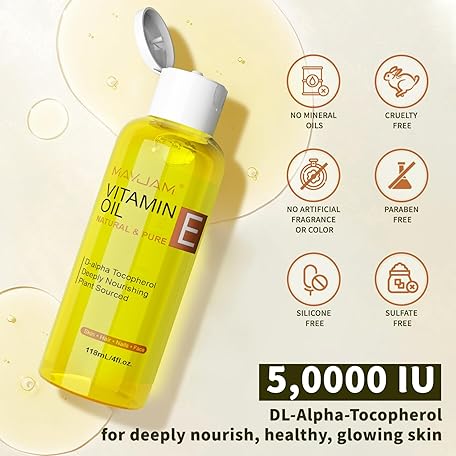 Thông tin sản phẩm MAYJAM Vitamin E Oil - 118ML - Pure and Natural Vitamin E Oil for Skin, Strengthens and Moisturizes Hair, for Dryness, Wrinkles, Uneven Skin Tone