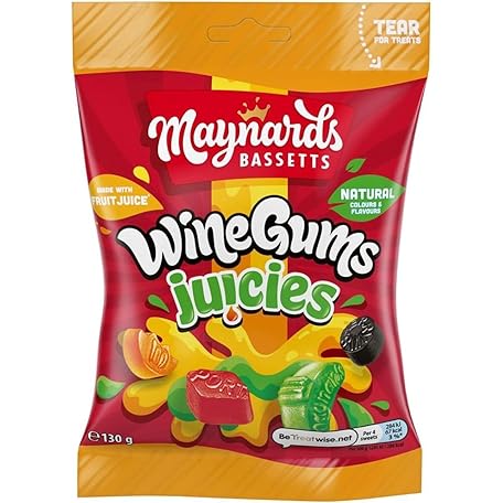 Thông tin sản phẩm Maynards Bassetts Wine Gums Juicies Sweets, Bursting With Fruity Flavours, 130 g Bag (Pack of 1)