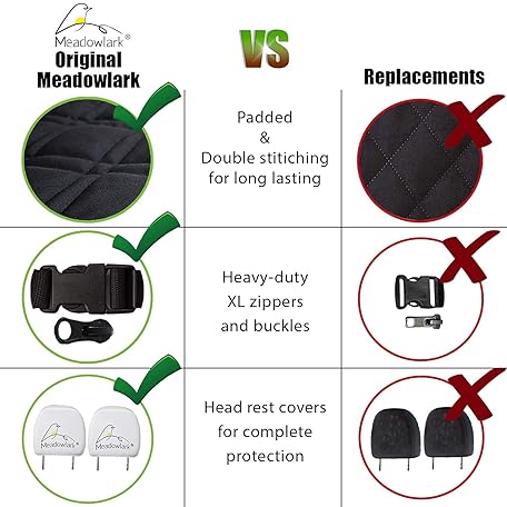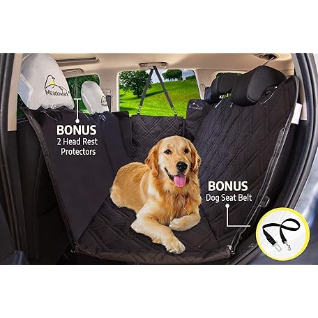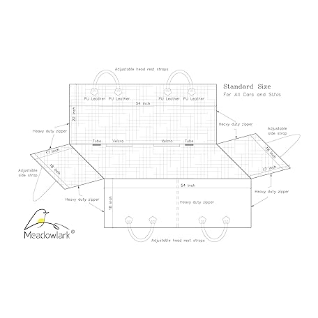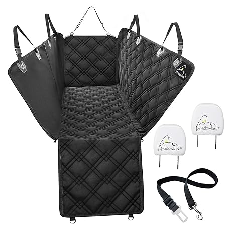 Thông tin sản phẩm Meadowlark Dog Seat Covers Unique Design & Entire Car Protection-Doors,Headrests & Backseat. Extra Durable Zippered Side Flap, Waterproof Pet Seat Cover + Seat Belt & 2 Headrest Protectors, I0113671