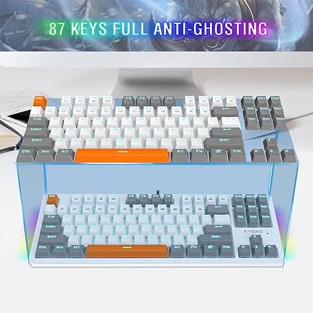 Thông tin sản phẩm Mechanical Gaming Keyboard, E-YOOSO Wired Mechanical Keyboard with Brown Switches, 87 Keys Gaming Keyboard with Solid Color Backlit & RGB LED Sidelight for Windows Mac PC Gaming