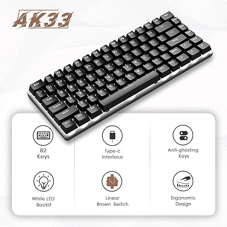 Thông tin sản phẩm Mechanical Keyboard, AK33 White LED Backlit USB Cable Gaming Mechanical Keyboard, 82-key Compact Mechanical Gaming Keyboard with Anti-ghosting Keys for Gamers & Typists (Brown switch, Black)