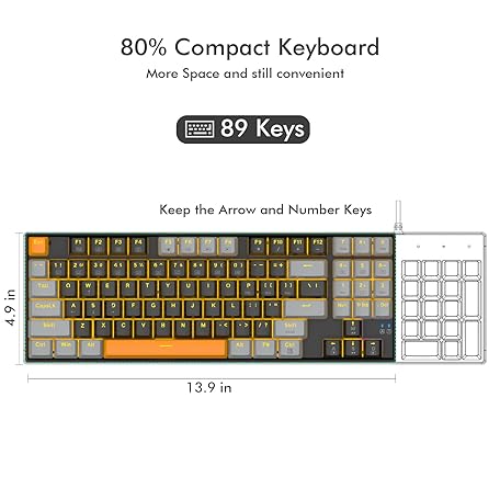 Thông tin sản phẩm Mechanical Keyboard, E-YOOSO Wired Compact LED Backlit Computer Keyboard with Number Pad, 89 Keys Mechanical Gaming Keyboard with Tactile Brown Switch for Windows/Mac, Laptop/PC
