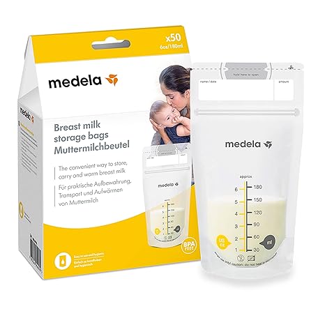 Sản phẩm Medela Set of 180 ml Breast Milk Storage Bags - Pack of 50 BPA-free breast milk collection pouches with double zip, quick freeze and thaw đang được bán với giá ưu đãi là $24.0999 tại nước Anh.