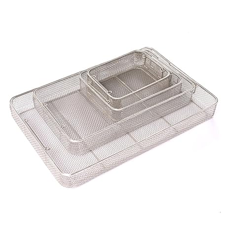 Medical 304 Stainless Steel Instrument Sterilization Baskets,Instrument Tray and Mesh Perforated Baskets Sterilization Tray,for Surgical Medical Dental Instruments, WWFKWEMK, 25 * 20 * 7cm