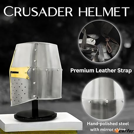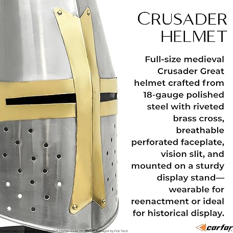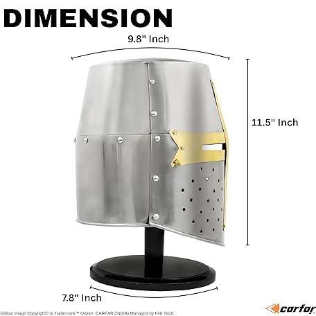 Thương hiệu Carfar là cái tên nổi tiếng được rất nhiều khách hàng trên thế giới chọn lựa. Với kiểu dáng đẹp mắt, sang trọng, sản phẩm Medieval Crusader Helmet 18-Gauge Steel Great with Brass Cross | Wearable Knight Helmet for LARP, Cosplay, Reenactment | Collectible Armor Display with Stand là sự lựa chọn hoàn hảo nếu bạn đang tìm mua một món cho riêng mình.