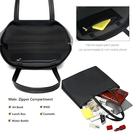 Sản phẩm MEEGIRL Ladies Tote Bags Simple PU Leather Handbags Work School Shopping Bags for Women with Zip and Inner Pocket (Black) đang được bán với giá ưu đãi là $20.4048 tại nước Anh.