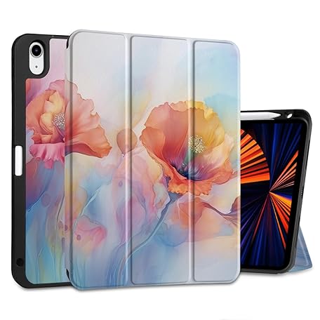 MEEgoodo Case for iPad Air 11 inch (M3) 2025/ (M2) 2024, Cover for iPad Air 5th Generation/iPad Air 4th Generation 10.9 inch 2022 2020, Tablet Cases with Pencil Holder, Field Rainbow Poppies