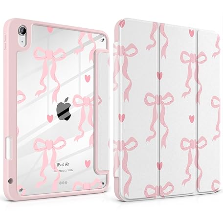 MEEgoodo Case for iPad Air 11 inch M3 2025 / M2 2024,for iPad Air 5th / 4th Generation Case 10.9 inch 2022/2020, Tablet Cover with Acrylic Transparent Back Shell, Trendy Bow & Hearts