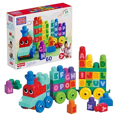 Thông tin sản phẩm MEGA BLOKS First Builders Toddler Building Blocks Toy Set, ABC Learning Train with 60 Pieces, Ages 1+ Years, DXH35