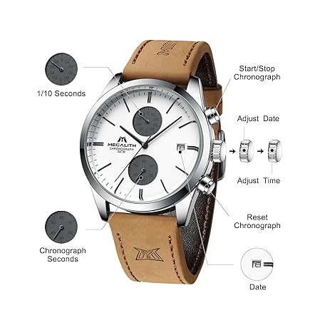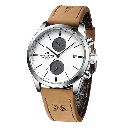 Sản phẩm MEGALITH Wrist Watches for Men Chronograph with Silver Stainless Steel Leather Strap Date Waterproof Analogue Quartz Mens Watches Designer Business Casual Gents Watch đang được bán với giá ưu đãi là $28.667 tại nước Anh.