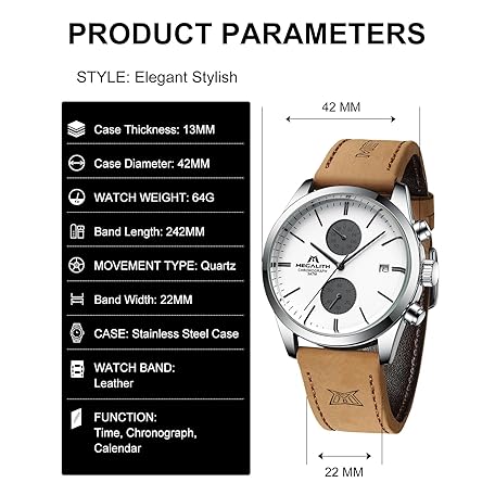 Thương hiệu MEGALITH là cái tên nổi tiếng được rất nhiều khách hàng trên thế giới chọn lựa. Với kiểu dáng đẹp mắt, sang trọng, sản phẩm MEGALITH Wrist Watches for Men Chronograph with Silver Stainless Steel Leather Strap Date Waterproof Analogue Quartz Mens Watches Designer Business Casual Gents Watch là sự lựa chọn hoàn hảo nếu bạn đang tìm mua một món cho riêng mình.