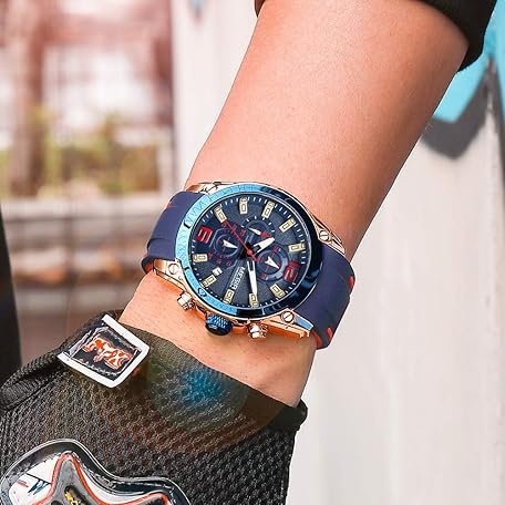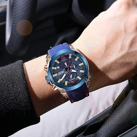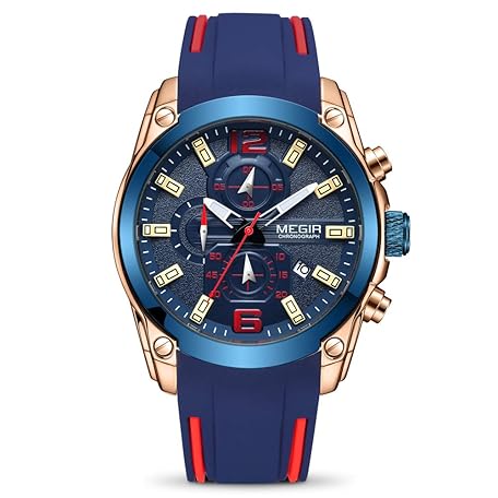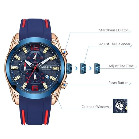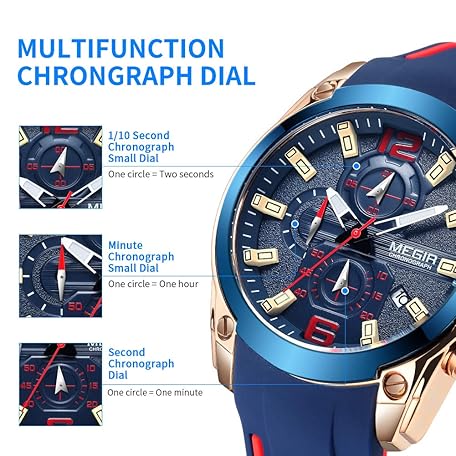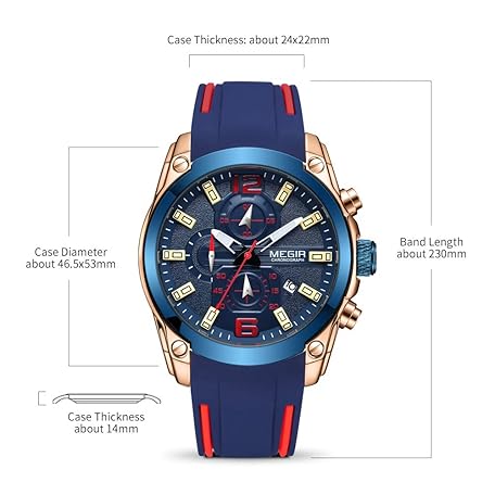 Thông tin sản phẩm MEGIR Men's Analogue Sport Chronograph Luminous Quartz Watch with Fashion Silicone Strap, Rose/Blue, Chronograph,Quartz Movement