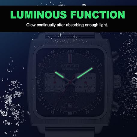 Sản phẩm Megir Men's Rectangle Business Work Analogue Quartz Chronograph Luminous Sport Wrist Watch with Leather/Stainless Steel Strap 2182G đang được bán với giá ưu đãi là $40.0793 tại nước Anh.