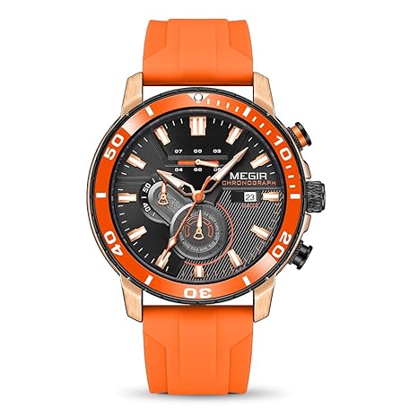 Megir Men's Sport Watch Analogue Quartz Chronograph Military Luminous Wrist Watch with Silicone Strap 2224G