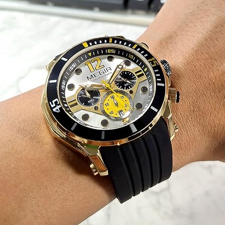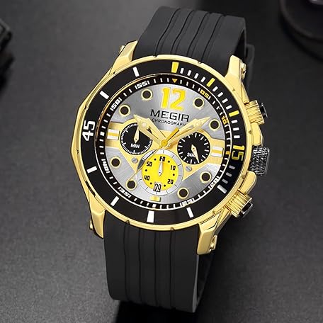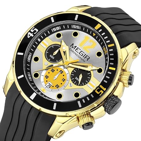 MEGIR Military Sport Watches for Men Fashion Chronograph Quartz Watch Man Waterproof Wristwatch with Silicone Strap Auto Date