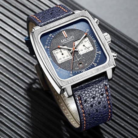 Sản phẩm MEGIR Square Dial Chronograph Quartz Watches for Men Fashion Leather Strap Casual Sport Wristwatch with Date 24-Hour 2182 đang được bán với giá ưu đãi là $44.3521 tại nước Anh.