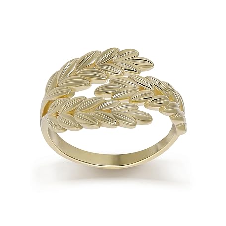 Meissa Meissa 925 Sterling Silver Adjustable Leaf Ring for Women Open Ended Spiral Ring Dainty Gold Pleated Leaf Sizable Ring Handmade Jewellery Ring, Gold