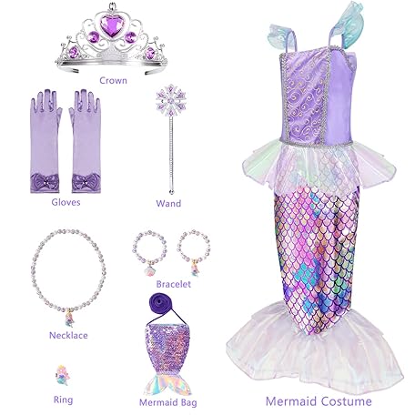 Sản phẩm MELAND Mermaid Costume Kids, Princess Costumes for Girls Gift Aged 3-10, Little Mermaid Dress Up for Girls Halloween, Party đang được bán với giá ưu đãi là $24.6994 tại nước Anh.
