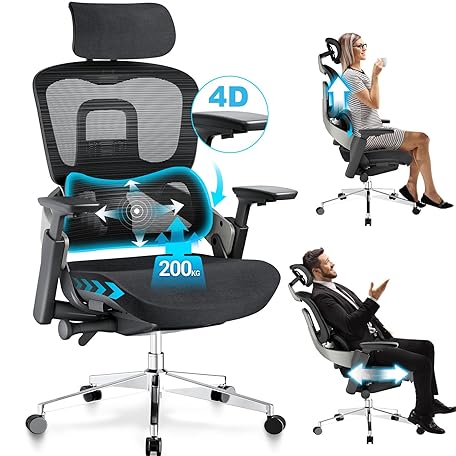 Sản phẩm MELOKEA Office Chair Height & Seat Depth Adjustable 3D Headrest 4D Armrest 200kg/440LBS Antibacterial Latex Ergonomic Heavy Duty Desk Chair Seat-Back Synchronization against Pain TUV&EN1335 Black đang được bán với giá ưu đãi là $267.6386 tại nước Anh.