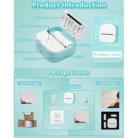 Thông tin sản phẩm Memoking Print Pods Mini Printer - T02 Thermanote Thermal Sticker Printer for Kids, Portable Label Maker Inkless Sticker Maker Machine, Pocket Phone Instant Print for Study, Anatomical Diagrams, Photo