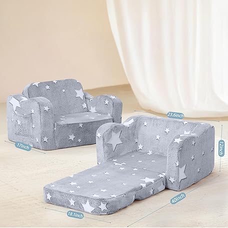 Sản phẩm MeMoreCool Kids Couch Sofa, Folding Toddler Chair Bed, Soft Plush Fold Out Kids Armchair Floor Mini Sofa Glow in The Dark, Comfy Baby Recliner for Girls Boys, Grey đang được bán với giá ưu đãi là $55.2194 tại nước Anh.