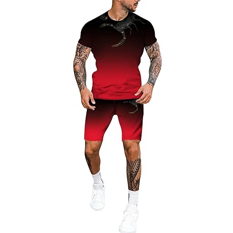 Men's 3D Quick Dry Short Sleeve Suit Shorts Beach Tropical HawaiianSS Body Sports Shorts Suit Sports Suit Sweatshirts Hood Under Armour for Men, Red #1, XXXL