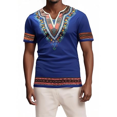 Men's African Traditional T Shirt Dashiki Print Fashion Shirt Festival T-Shirt Gold Printed Dashiki Tee Tops V Neck Shirts