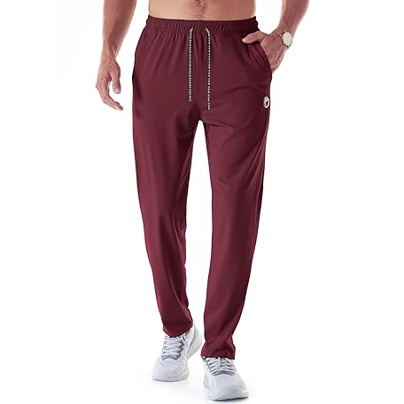 Mens Athletic Joggers with Zipper Pockets Lightweight Gym Sweatpants Men Quick Dry Workout Track Pants Jogging Running, Dred, XXL