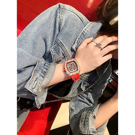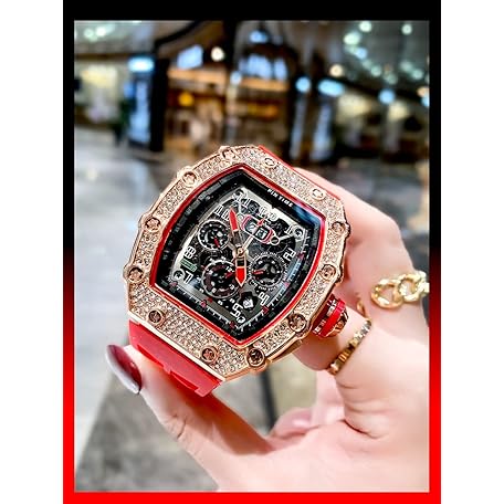 Thông tin sản phẩm Mens Diamond Watches Luxury Tonneau Watches for Men Analog Watch Chronograph Calendar Date Men’s Dress Business Work Watch Large Rectangle Face Wristwatch with Silicon Strap, Red Rose Gold,