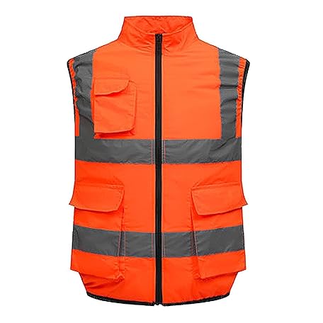Men's Gilets Sleeveless Air Conditioned Jacket With Reflective Strips Casual Vest Coats For Outdoor Work And Daily Wear Slim Fit Zip Up Lightweight Jackets For Men Uk Multi Pockets Vest Coat