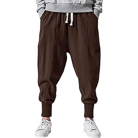 Mens Gym Joggers Pants Drawstring Elastic Pockets Tapered Sweatpants Casual Running Trousers - Brown - X-Large