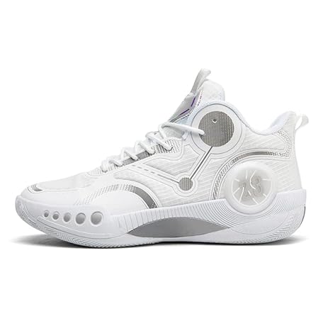 Men's High Top Basketball Shoes Ultra Lightweight Breathable Mesh Shock-Absorbing Sole Suitable(White,9 UK)