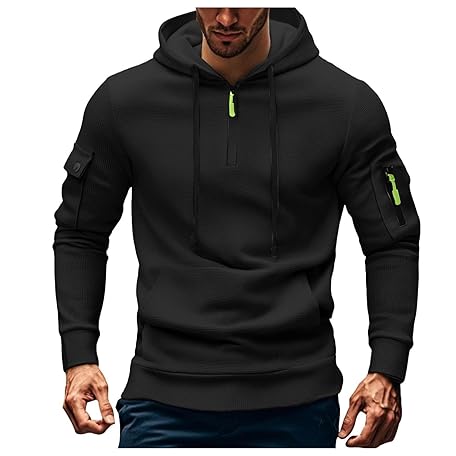 Mens Quarter Zip Hoodies Waffle Hooded 1/4 Zipper Sweatshirts with Pocket 2025 Winter Fall Long Sleeve Pullover Tops suéter Polo para Hombre(Black, XL)