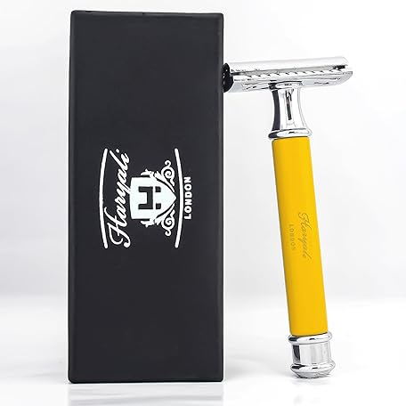 Men's Shaving De Safety Razor in Yellow. Perfect for Deep Clean Shave. Comes in a Designer Box.