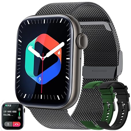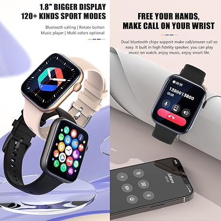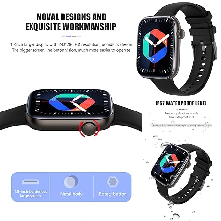 Thông tin sản phẩm Men's Smart Watch with Voice Assistant Bluetooth Calling, 1.8 Inch Smartwatch with 3 Bracelets/123 Sports Modes/Female Function/Music Player/Heart Rhythm/Sleep for Android iOS (Black)
