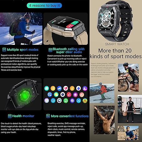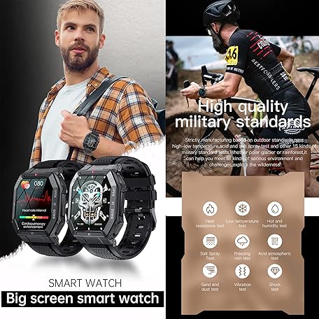 Thông tin sản phẩm Men's Smartwatch with Phone Function, 1.85 Inch Touchscreen 5ATM Waterproof Sports Watch with Blood Pressure Monitor, Heart Rate, Pedometer, 24 Sports Modes, Military Fitness Watch for iOS and Android