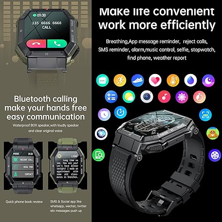 Thương hiệu FITCXJX là cái tên nổi tiếng được rất nhiều khách hàng trên thế giới chọn lựa. Với kiểu dáng đẹp mắt, sang trọng, sản phẩm Men's Smartwatch with Phone Function, 1.85 Inch Touchscreen 5ATM Waterproof Sports Watch with Blood Pressure Monitor, Heart Rate, Pedometer, 24 Sports Modes, Military Fitness Watch for iOS and Android là sự lựa chọn hoàn hảo nếu bạn đang tìm mua một món cho riêng mình.