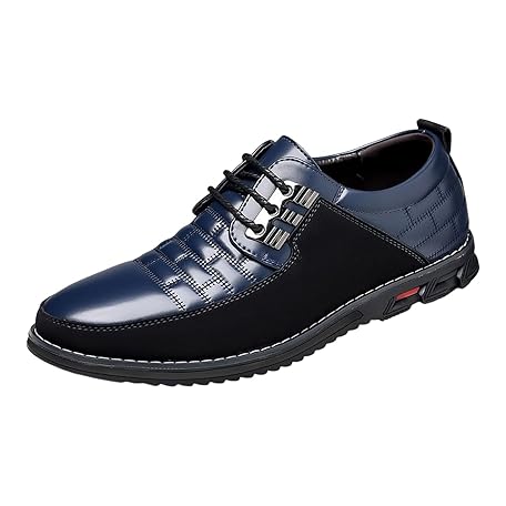 Men's Wedding Dress Shoes Vintage Patent Lace-ups Oxfords Round Toe Leather Shoe Block Heel Trainers Non Slip Wide Footwear for Both Office and Leisure (Blue, 10.5)