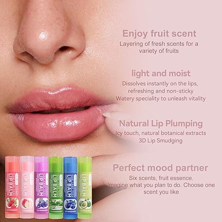 Thông tin sản phẩm mercham 6 Pack Organic Lip Balm Set, Fruit Lip Repair Balm Multipack, Moisturizing Lip Balm for Dry Cracked Lips, Lip Salve for Soft & Smooth Lips, Lip Care Balms for Girls and Kids