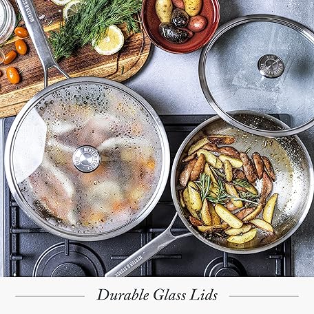 Thông tin sản phẩm Merten & Storck Tri-Ply Stainless Steel Induction 26cm and 30cm Frying Pan Skillet Set with Lids, Multi Clad, Oven Safe, Silver