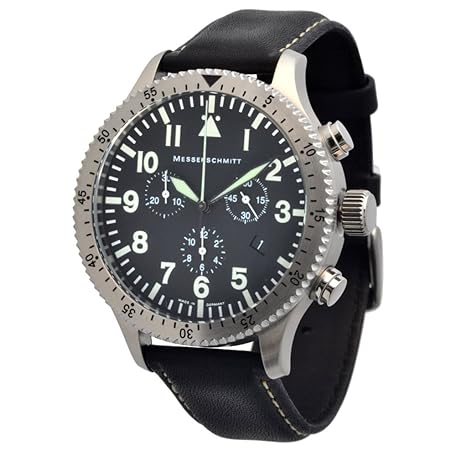 Messerschmitt Men's Quartz Chronograph 5031LS Ronda Swiss Movement 5ATM with Black Leather Strap with White Stitching