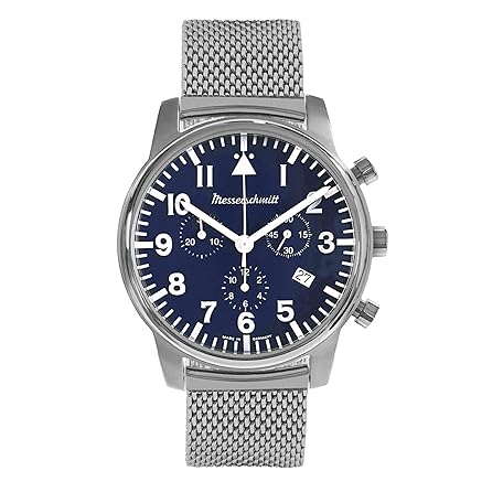 Messerschmitt Men's Watch Chronograph Mesh Band/Blue ME-4544P-M, silver, Modern