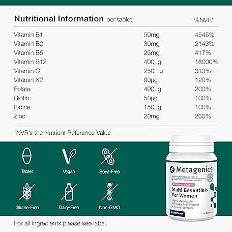 Thương hiệu Metagenics là cái tên nổi tiếng được rất nhiều khách hàng trên thế giới chọn lựa. Với kiểu dáng đẹp mắt, sang trọng, sản phẩm Metagenics Multi Essentials for Women Multivitamin with Iron - 29 Vitamins & Minerals for Women - Vegetarian and Vegan - 30 Tablets là sự lựa chọn hoàn hảo nếu bạn đang tìm mua một món cho riêng mình.