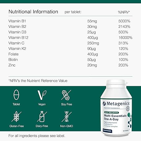 Thương hiệu Metagenics là cái tên nổi tiếng được rất nhiều khách hàng trên thế giới chọn lựa. Với kiểu dáng đẹp mắt, sang trọng, sản phẩm Metagenics - Multi Essentials One A Day Multivitamin - 26 Vitamins & Minerals - Vegetarian and Vegan - 60 Tablets là sự lựa chọn hoàn hảo nếu bạn đang tìm mua một món cho riêng mình.