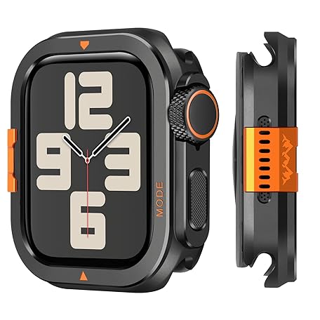 Metal Bumper Cover Compatible with Apple Watch Series 6/5/4/SE Case, [Turn 44mm into Ultra Look] Rugged Shockproof Protector with Back Frame for iWatch 44mm, Black