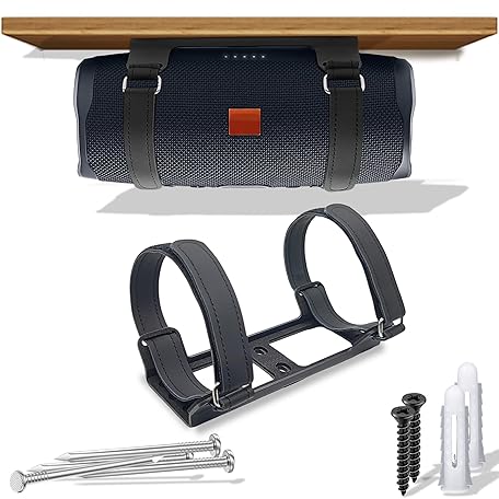 Thông tin sản phẩm Metal Wall Mount Compatible with JBL Charge 6/Charge 5,4,3/Flip 7/Flip 6,5,4, Secure Shelf Bracket with Adjustable Leather Straps Speaker Wall Mount for Ceiling (Black)
