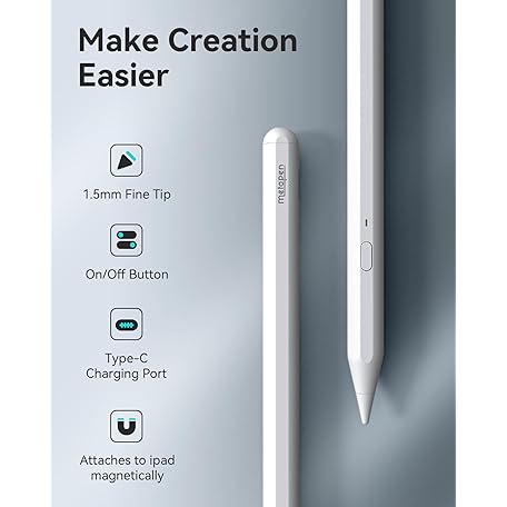 Sản phẩm Metapen Pencil A11 for iPad 2018-2025, (Quick Button), 0.1mm Pixel Precise, 2X Faster Charge Stylus Pen Compatible Apple iPad 11 A16/10/9/8/7/6th Gen, Pro 12.9/11/13-inch M4, Air 3/4/5/M2/M3, Mini 5/6 đang được bán với giá ưu đãi là $23.7729 tại nước Anh.